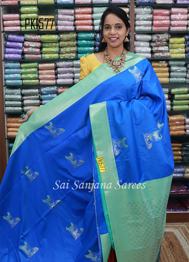 silver zari Semi Kanchi Soft Silk saree