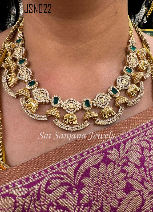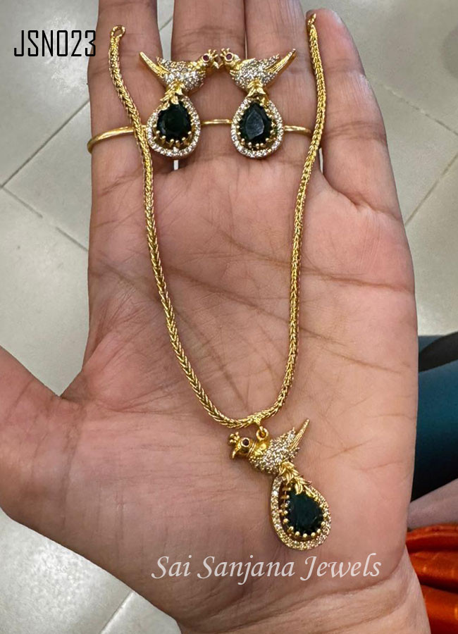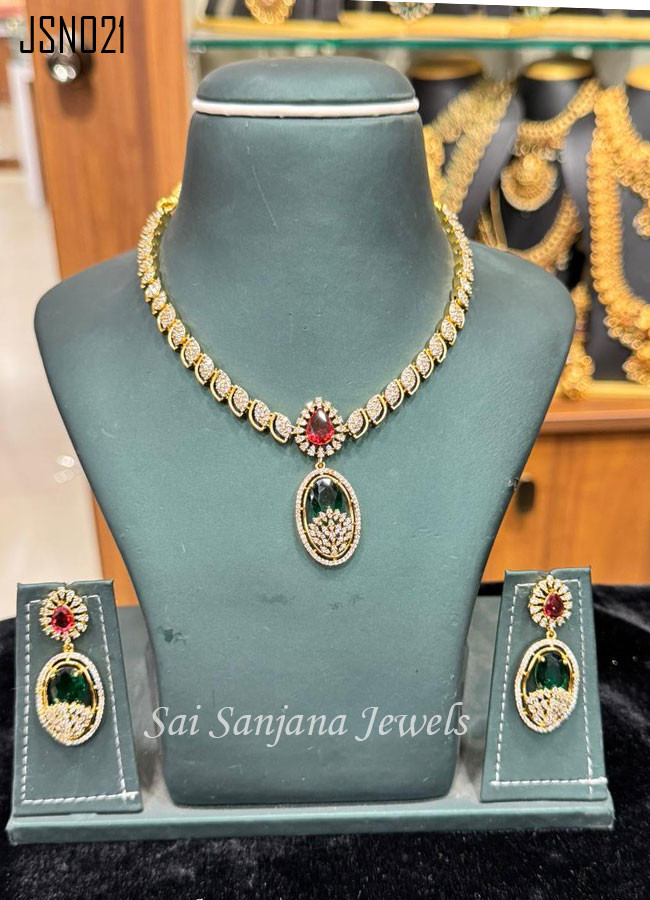 Zircon Stone Necklace With Emerald Stone
