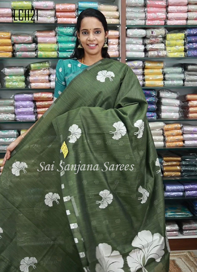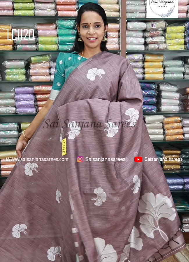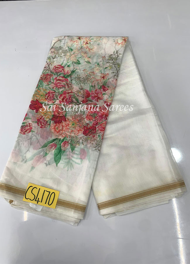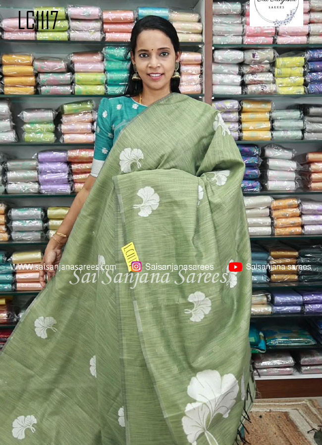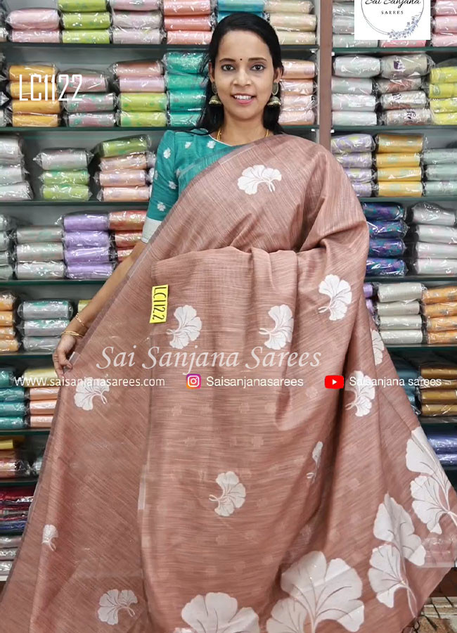 Tusser Cotton Floral Print Silk Saree