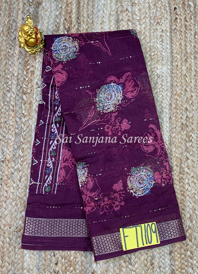 Semi Chanderi Sico Cotton With Sequence Work Saree