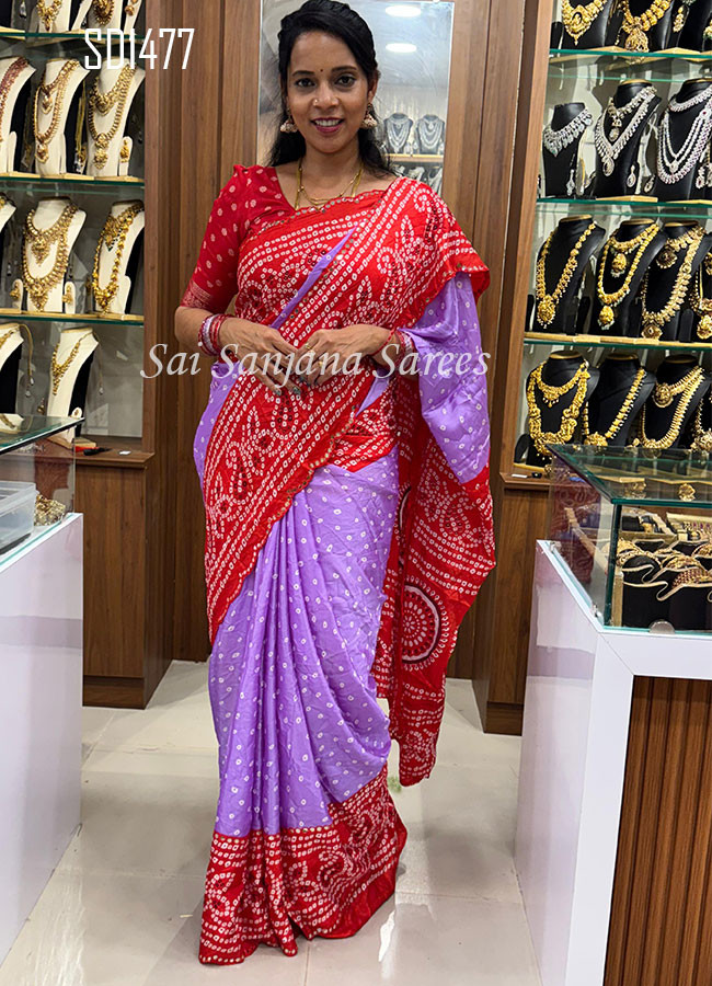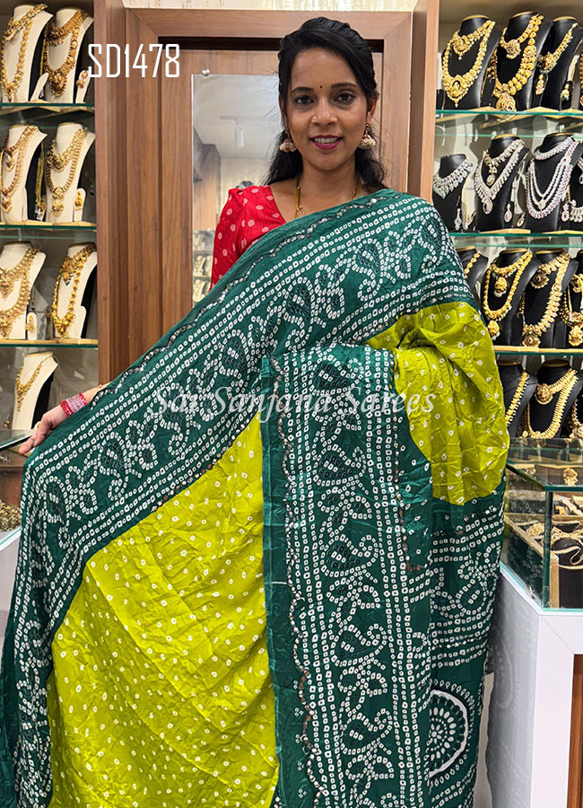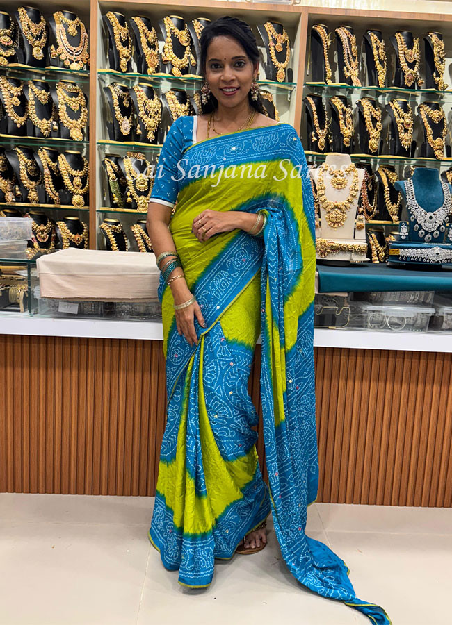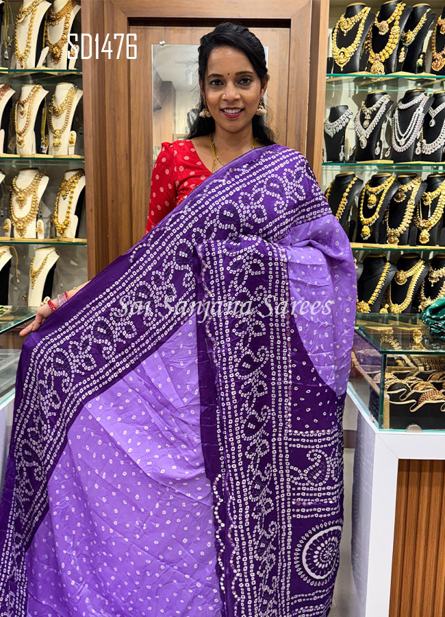 Premium Dola Bandhini Printed with Mirror Work Border Saree