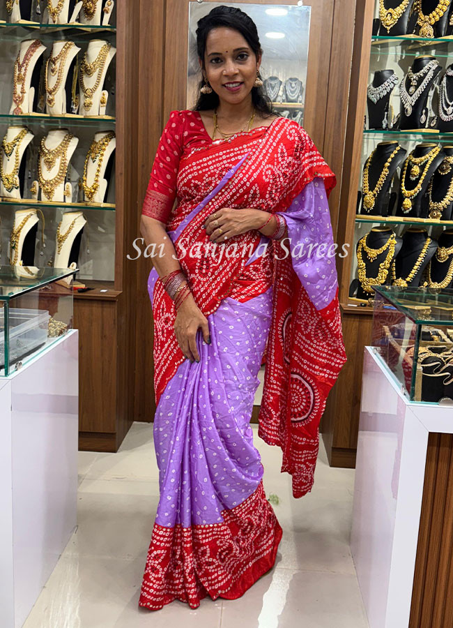 Bandhini Printed Saree With Mirror Work Border Saree