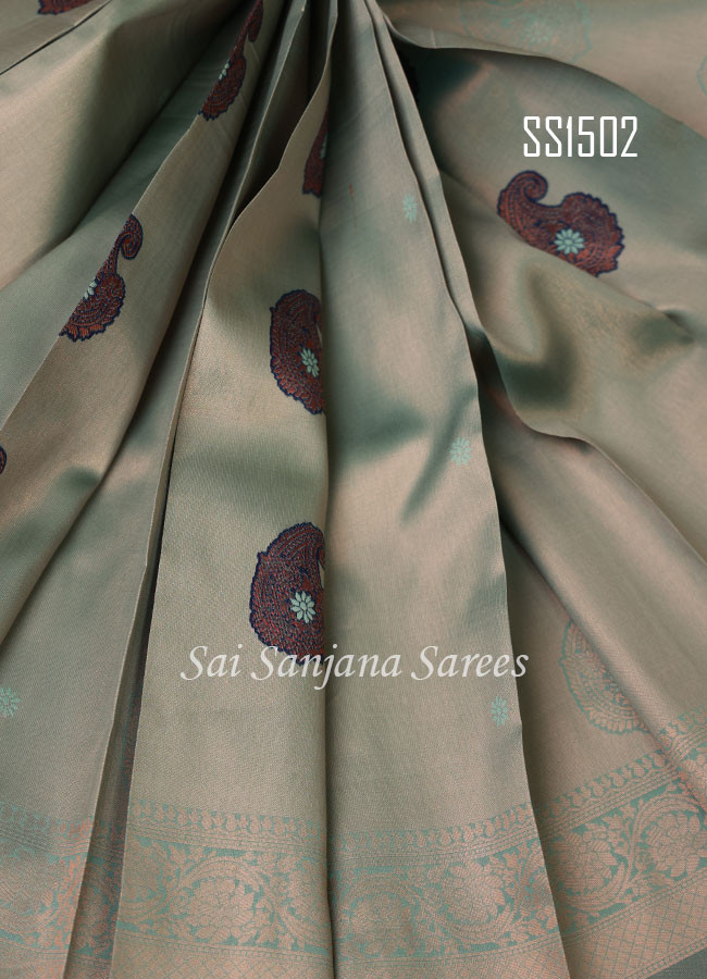 Semi kanchi super soft silver zari saree
